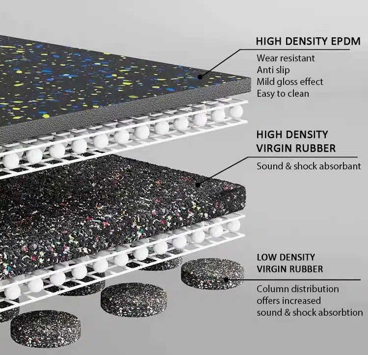 Create a safe, stable, and professional workout surface that stands up to the demands of modern training with these premium EPDM flooring tiles.