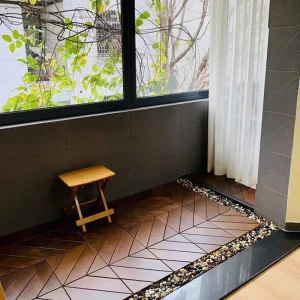 Enjoy the unique charm of our wood parquet design in outdoors as well!