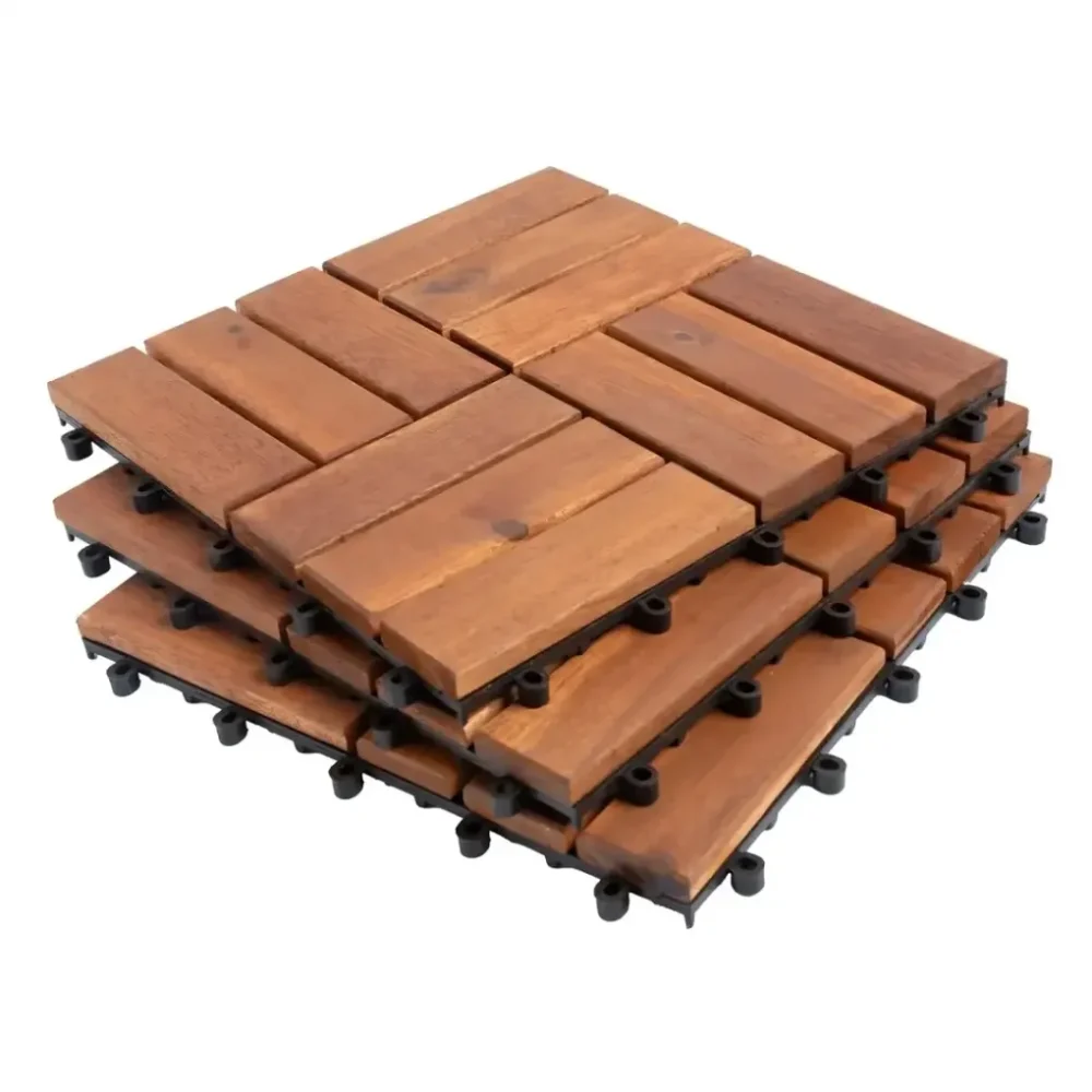 Living Accents Acacia Wood 12-Slat Floor Deck Tiles