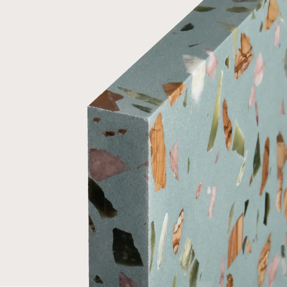 Enhance your design palette with Unie Marzipan Terrazzo Honed 12×12 Premium Terrazzo Tile, a vibrant and artistic flooring solution that brings handcrafted charm to modern interiors and exterior spaces. Featuring a whimsical mix of teal, pink, green, and brown stone chips set within a smooth honed surface, this terrazzo tile adds depth, color, and character to kitchens, bathrooms, living areas, feature walls, patios, and more.